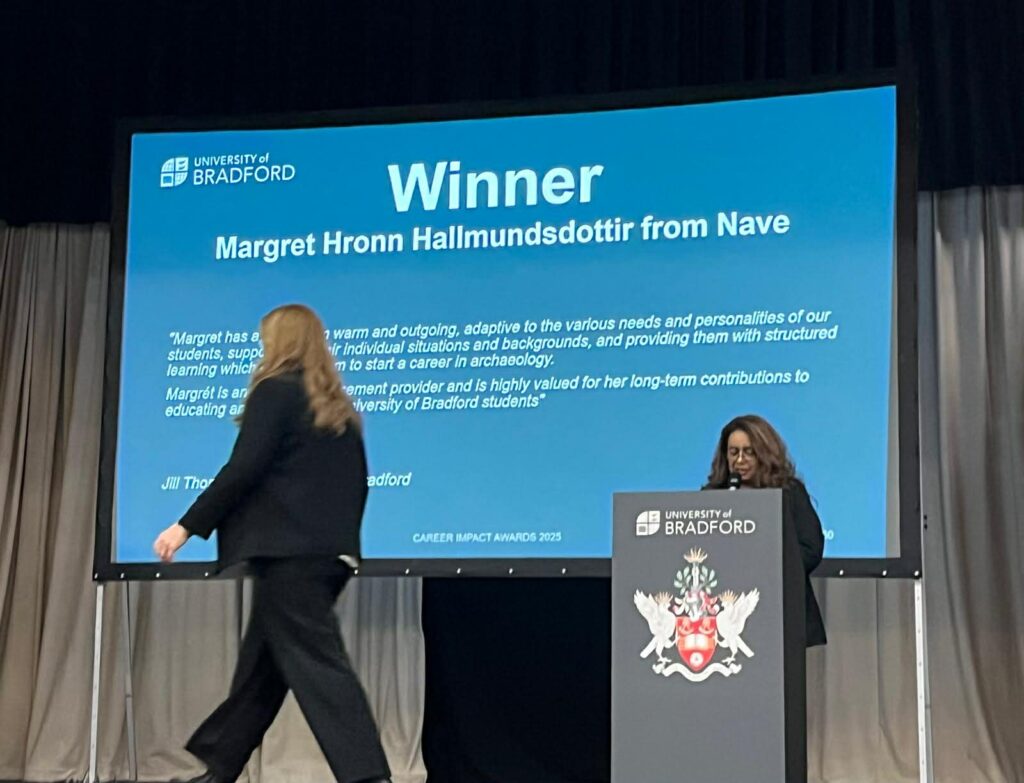 Á dögunum var haldin verðlaunahátiðin Career impact award 2025 í Bradford Háskóla í Englandi. Fornleifadeild Náttúrustofu Vestfjarða var tilnefnd til verðlauna ásamt 4 öðrum stofnunum. Verðlaunin komu svo í hlut Náttúrustofu Vestfjarða. Verðlaunin hlýtur fornleifadeild fyrir framúrskarandi kennslu í vettvangsskóla sem hefur verið starfræktur í tengslum við fornleifa rannsóknina Arnarfjörður á miðöldum á Auðkúlu og Hrafnseyri undanfarin ár. Þetta er mikil viðurkenning fyrir fornleifadeildina sem lagt hefur mikla áherslu að bjóða upp á vandaða og góða kennslu fyrir nemendur Bradford háskóla.